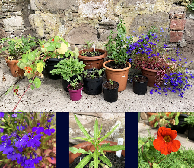 | From the left: Strawflower, Cornflower, Courgette & Poached Egg Plant |